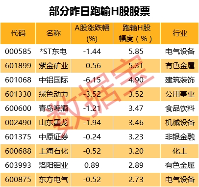 年初以来,共有34只A股跑赢相对应的H股,其余超六成股票均跑输。