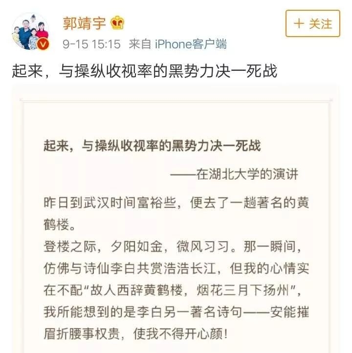 电视剧导演郭靖宇实名举报其执导的电视剧遭遇收视率“黑幕”