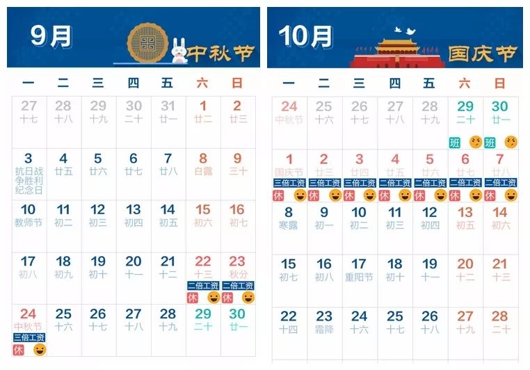 小编算了笔帐,如果中秋假期3天全加班并且没有补休,可以拿到接近月工资三分之一的加班费;如果国庆假期7天全加班并且没有补休,可以拿到接近月工资8成的加班费。
