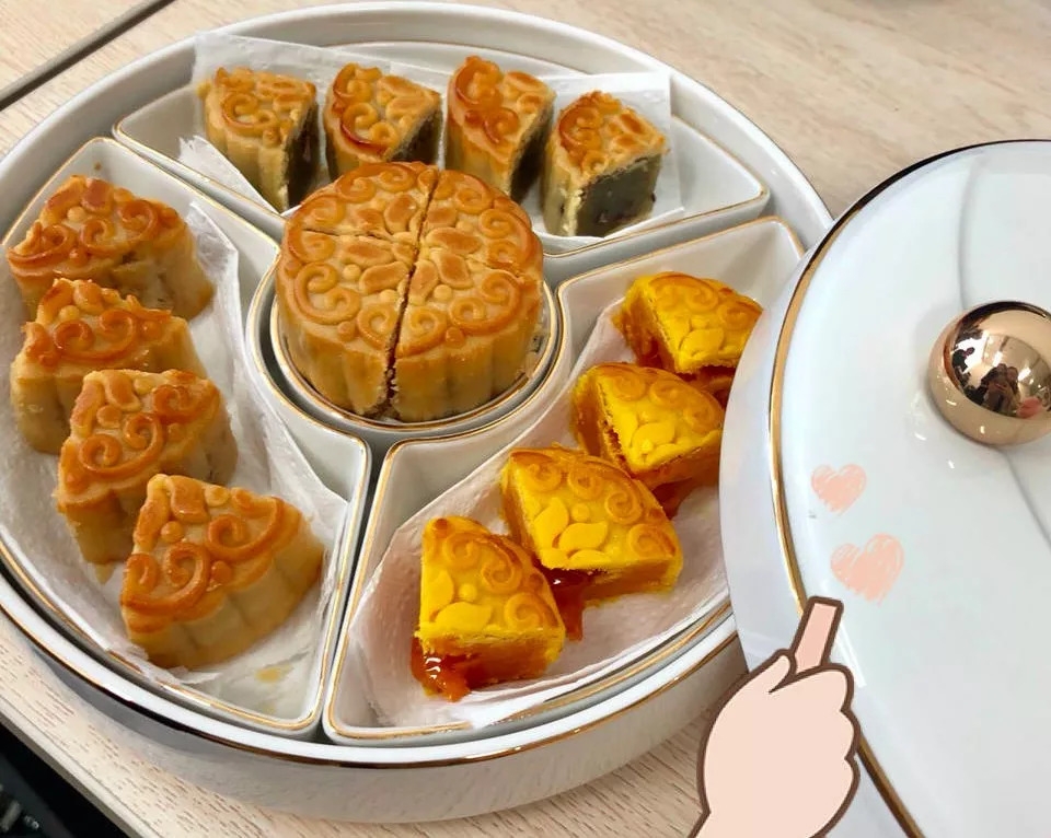 里面的月饼也是诚意十足,特别向广州酒家定制,考虑到南北方员工的口味差异,有广式五仁、流心奶黄、抹茶红豆、蛋黄莲蓉四种口味。