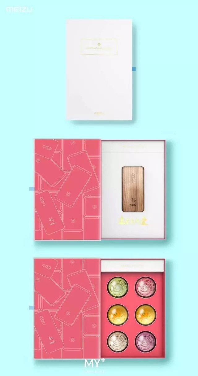 魅族今年的中秋月饼主题是“追求源于热爱”,白粉搭配,清新宜人。看内包装,目测第一主角是手机模型。