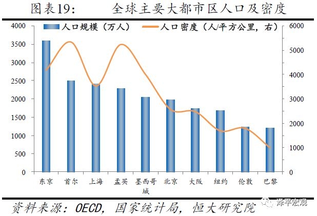 从人口规模看,上海市以2415万人位居全球第三,居东京都市区3593万人、首尔都市区(2495万人)之后;北京都市区(1970万人)位居全球第六,中间还隔着孟买都市区(2280万人)、墨西哥城都市区(2040万人)。