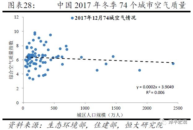 人口规模与城市空气污染的相关性很弱。从2017年7月、12月全国74个城市的数据看,空气质量与城市人口规模的相关性很弱。当然,城市人口增加对环境质量肯定存在一定影响,但这种影响要远低于产业结构、生产生活方式及环境保护力度等产生的影响。比如,100人使用私家车所造成的环境影响可能是100人使用公共交通的几倍到几十倍;一辆黄标车的污染物排放量是国Ⅲ车的14倍、国Ⅳ车的25倍;一个人口100万以重化工业为主的城市排放污染量很可能远大于一个人口500万但以第三产业为主的城市。美国洛杉矶的例子表明,大城市的人口增加与环境质量提高可以并行不悖。洛杉矶从1943年至1980年代也经历过严重的雾霾天气,突出表现是1952年12月和1955年9月的光化学烟雾事件,通过努力,虽然此后人口规模和机动车数量大幅增长,但空气质量却逐步改善。