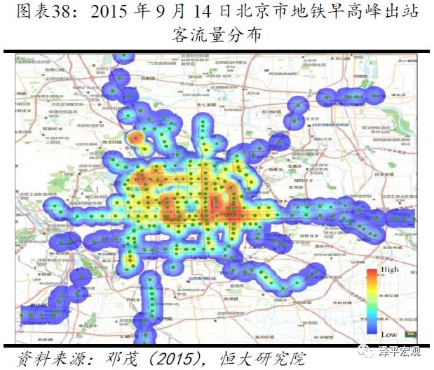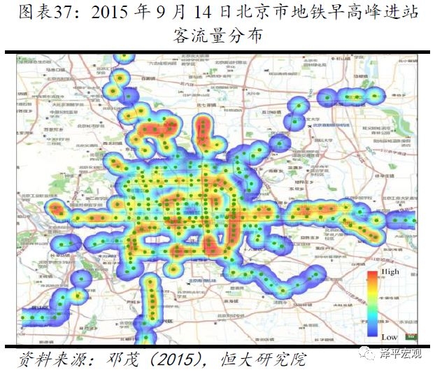 职住分离是国内外许多大城市交通拥堵的一个重要原因,这一情况在北京、上海尤其严重。就业与居住的分离现象不可能完全消除,但职住分离度可以降低。基于北京市2015年地铁早晚高峰进出站客流量分布数据,可以清晰地发现北京市的就业分布相对集中在中心城,而居住分布比较分散,且二者相距较远。北京市的就业中心主要集中在国贸周边区域、二环西段沿线地区、二环东段沿线地区等;居住中心主要有回龙观-霍营-育新地区、天通苑-东小口地区、宋家庄-蒲黄榆-刘家窑地区、十里河-潘家园-劲松-双井-国贸地区等。职住分离严重的一个重要原因是聚集大量人口的新城未布局足够的产业,“睡城效应”十分明显,比如北京回龙观-天通苑地区。