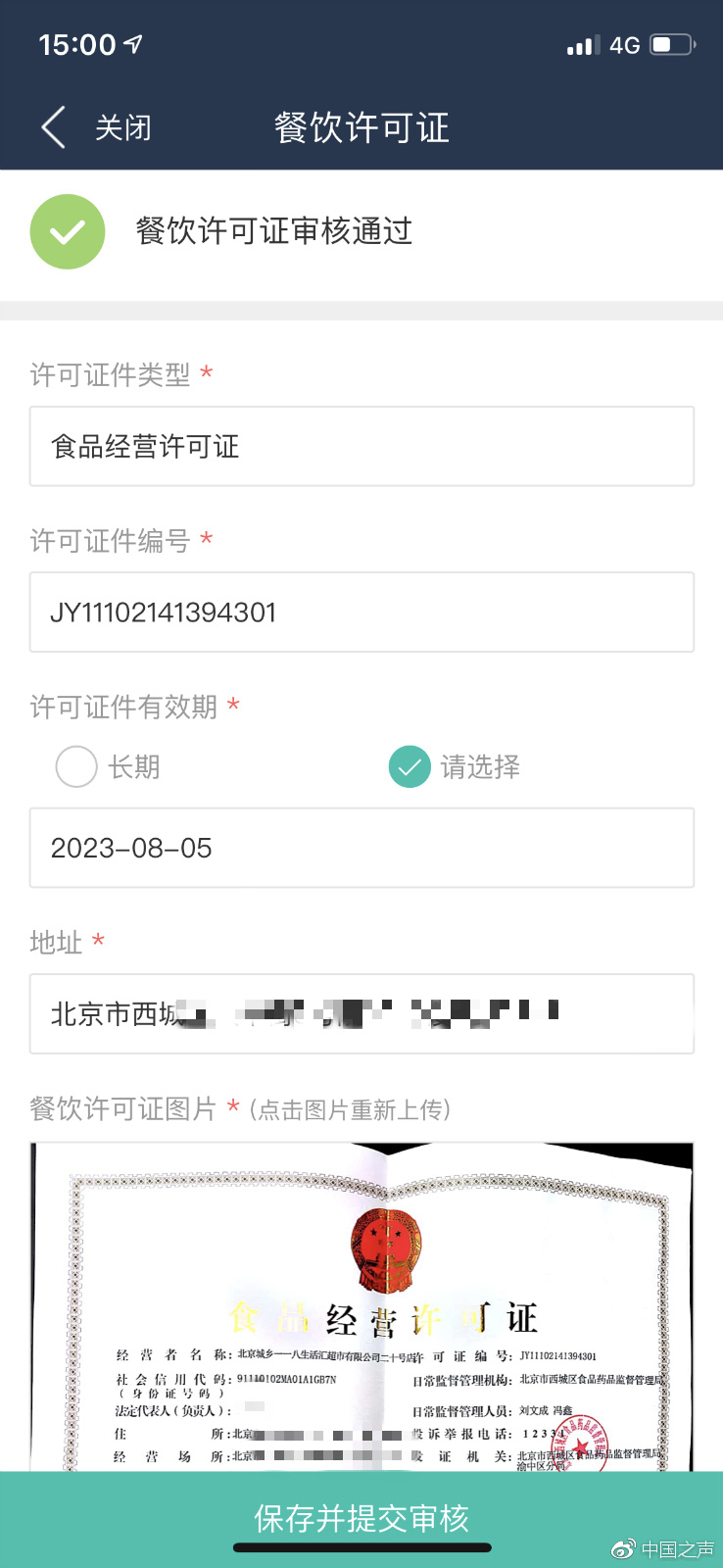 一位美团客服人员告诉中国之声记者,想要在他们那里开店,营业执照和食品经营许可是必须要有的:“像这种普通餐馆的话,就是说要营业执照,然后还有许可证,许可证的话就是餐饮服务许可证,食品经营许可证,食品流通许可证,三个许可证3选1,再加上营业执照这两个证件就可以了,然后还要有一个实体店铺,到时候提交合作申请。这两个证件都要有营业执照和许可证,这是必须要有的。”