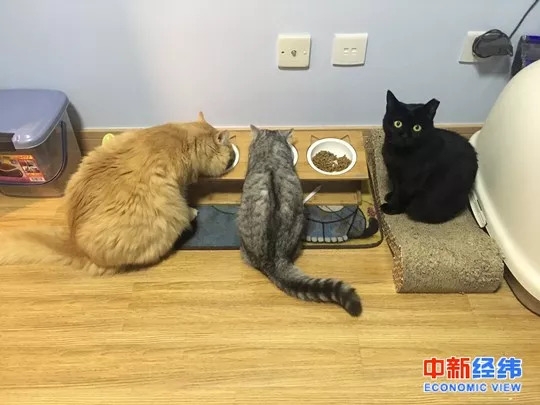 ▲作为丁克家庭,江铭与妻子收养了三只猫