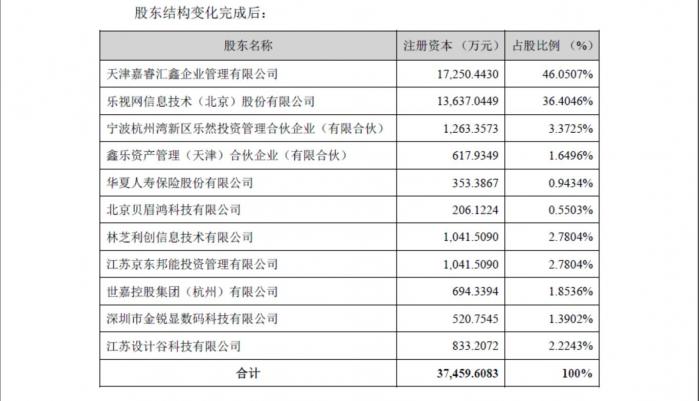 (上图为乐融致新经过司法拍卖后的股权结构)