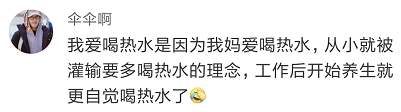 为什么爱喝热水?“因为我妈爱喝热水”。