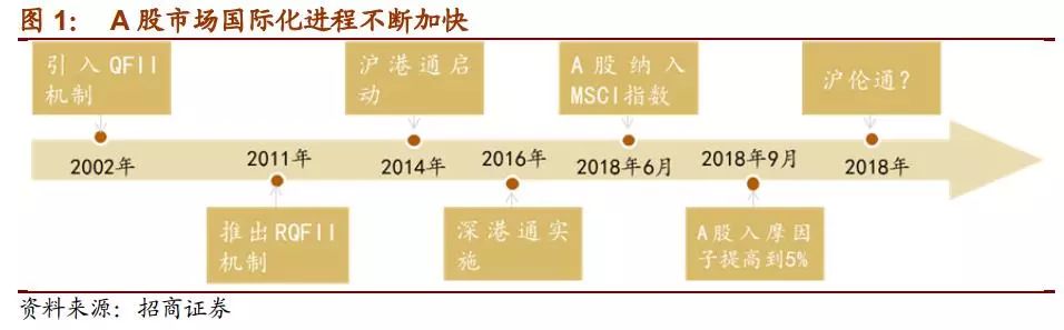 A股市场国际化进程不断推进,A股纳入国际资本市场的步伐也不断加快。外资在我国资本市场的参与度会继续加深。