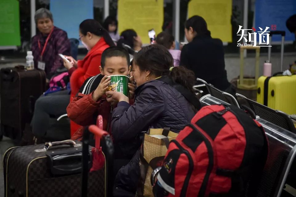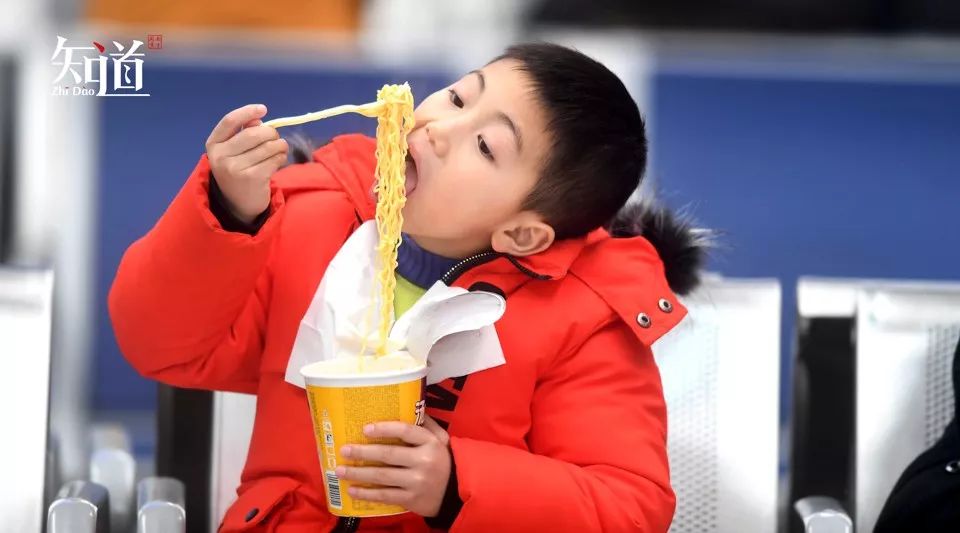 咣当咣当绿皮火车上,方便面桶和火车上不够滚烫的热水,内心满是回家的喜悦和期待。(新华社/图)