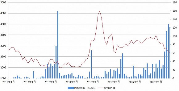 最近几个月来,上市公司回购金额同样呈现出了爆发式的增长。2013年4、5月A股的回购金额有显著增长,随后市场在6月下旬运行至最底部,而今年7月和8月A股回购金额明显猛增至阶段高位。
