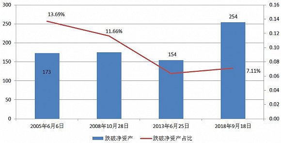 目前A股已经有超过250只个股的最新股价跌破净资产,数量远超A股历次大底之时。从占比方面看,虽然尚不及2005和2008年大底时,但是目前破净股在全部A股中所占的比例也已经高出了市场上次大底即2013年6月25日时对应的数值。