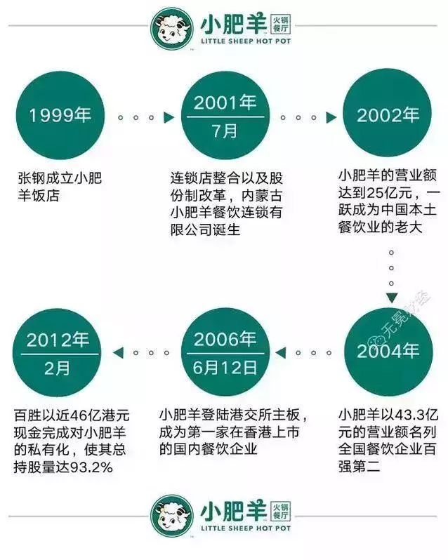 2006年6月,小肥羊首开国内餐饮行业引进外资风投的先河,引入3i和PraxCapital两家私募基金共计2500万美元投资。并于2008年6月12日登陆港交所主板,成为第一家在香港上市的国内餐饮企业,亦成就“火锅第一股”美名。此时,张钢股份已被稀释到12.97%。