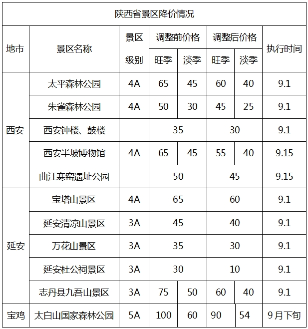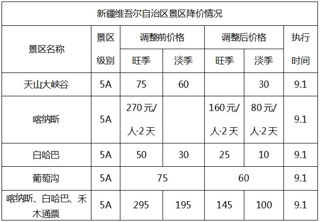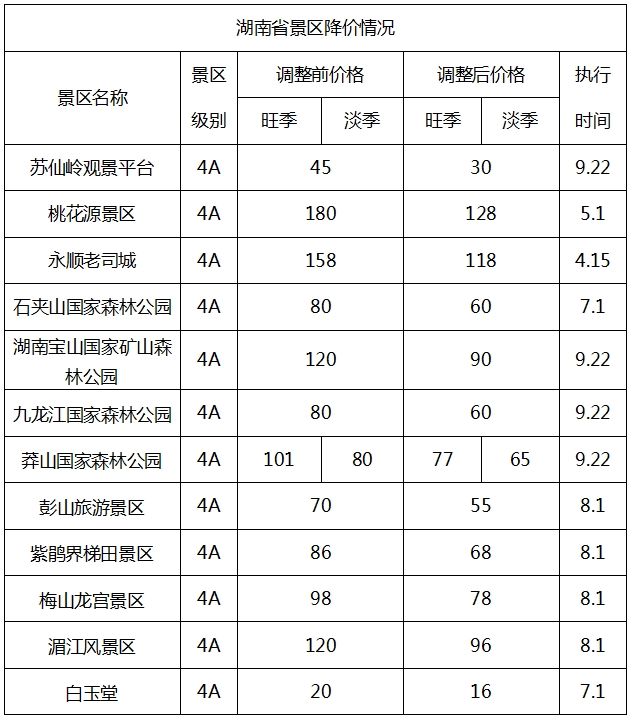 (以下各省份景区门票价格如有变化,请以景区实际公布票价为准。)