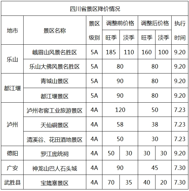 从7月16日起,旺季价格由原三处主景区合计门票245元降为一票180元;淡季价格由原160元降为120元。