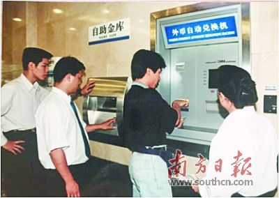 1997年8月,建行广东省分行在广州署前路设立全省第一家24小时自助银行,不少广州市民前往体验。