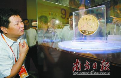 2012年6月,首届中国(广州)国际金融交易·博览会上,重10公斤的“千年纪念”金币引来大量观众驻足观赏。