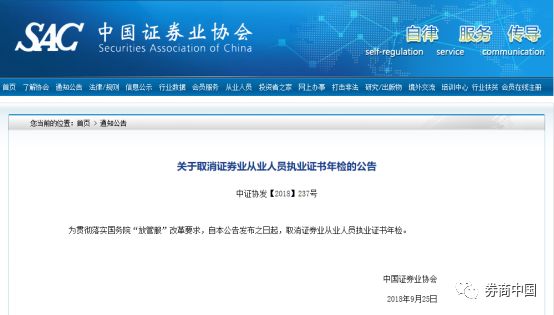 落实“放管服”改革要求,中证协取消执业证书年检