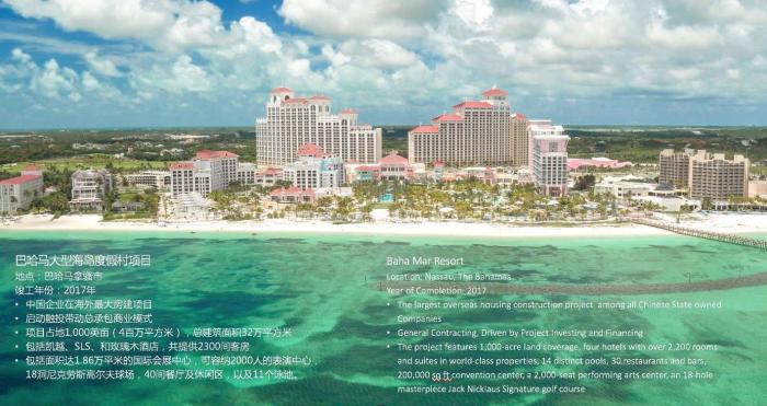 以中建美国为母公司,下属的中建美国南美公司在这一区域已经获得10个项目,合同总金额50多亿美元,其中包括竣工于2017年的巴哈马大型海岛度假村项目,合同金额24亿美元。在此项目中,中建创新采用了融资、设计和建造三位一体的融投资带动总承包模式。而刚刚签署的全长538公里的阿根廷国道B线特许经营项目签约额为21.3亿美元,是中国进入阿根廷的第一个PPP项目。