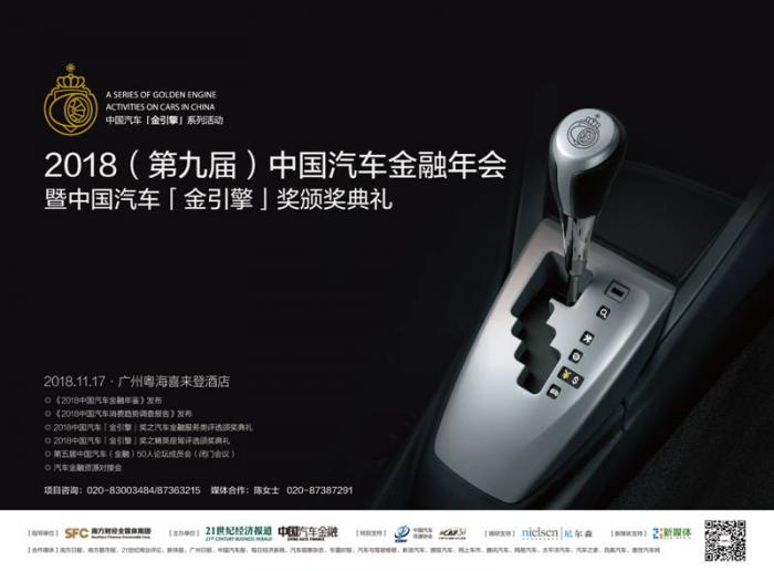 导读: 2018年11月17日,由南方财经全媒体集团指导,《21世纪经济报道》、《中国汽车金融》主办,中国汽车流通协会、中国汽车(金融)50人论坛特别指导,以“科技助力 稳健发展”为主题的“2018(第九届)中国汽车金融年会”将在广州隆重举行。作为中国汽车金融界最高规格的盛会,本次年会上还将举办汽车金融资源对接会,召开第五届中国汽车(金融)50人论坛成员会闭门会议,发布《2018中国汽车金融年鉴》、《2018中国汽车消费趋势调查报告》,公布2018中国汽车「金引擎」奖评选之汽车金融服务类和精英座驾的评选