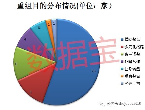 上市公司进行资产重组,目的各不相同,既有出于业务转型考虑,也有多元化战略发展等需求。数据宝统计显示,这47家公司中,出于横向整合需求进行重组的公司最多,有26家,占比55%。如海航科技、康盛股份、金字火腿、商赢环球、新力金融等。
