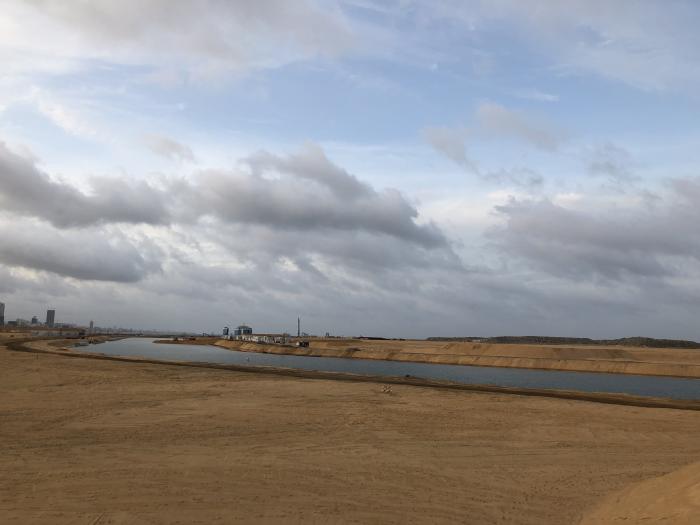 21世纪经济报道记者从中国港湾了解到,目前,港口城吹填工程已完成92%,明年三四月防波堤全部建完,6月填海造地将完成。“六通一平”将于2020年年底完成,“生地”变“熟地”。江厚亮告诉记者,目前十几块地已经拿到完工许可,已开始向政府申请地契,项目预计将于明年第一季度首发。