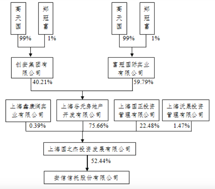 安信信托成立于1987年,是一家于上交所上市的信托公司,大股东为上海国之杰,上海国之杰为安信信托实际控制人高天国控制企业。