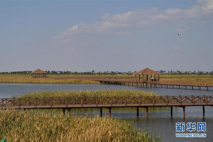 9月27日,游人在吉林松原查干湖野鸭岛参观游览。新华社记者 许畅 摄