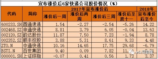 涨声刺激之下,4家A股上市快递公司股价已经有所表现,而去年快递涨价声音发出之后相关快递公司也迎来一波涨势。