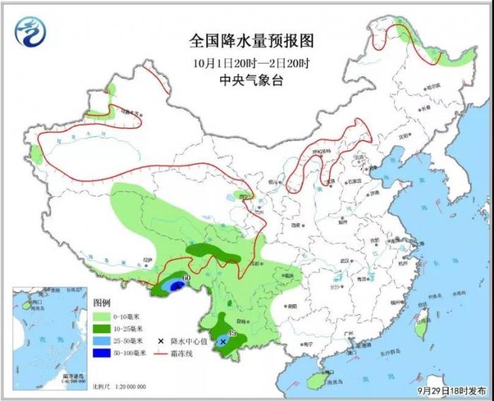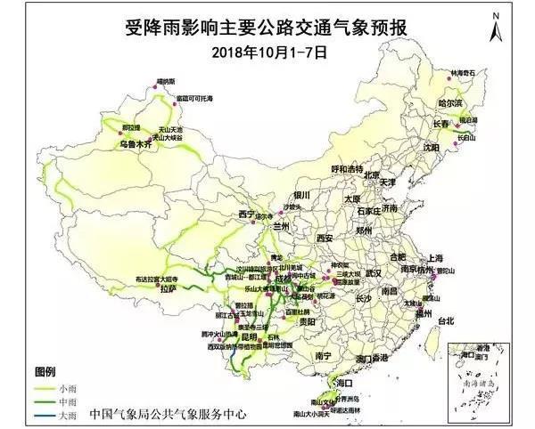 重庆、贵州、云南、四川一带阴雨绵绵,预计今天(9月30日)至10月3日,云南、四川雨势较大,西藏境内路线可能出现结冰和降雪,还需防范持续降雨引发的地质灾害;10月3日至4日新疆北部大风降温雨雪过程,去往喀纳斯景区关注临近预报,及时调整行程,注意出行安全。