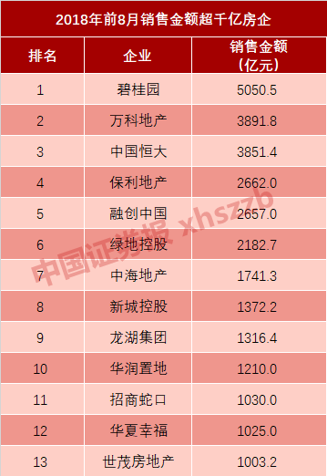 2018年前8月千亿房企已达13家