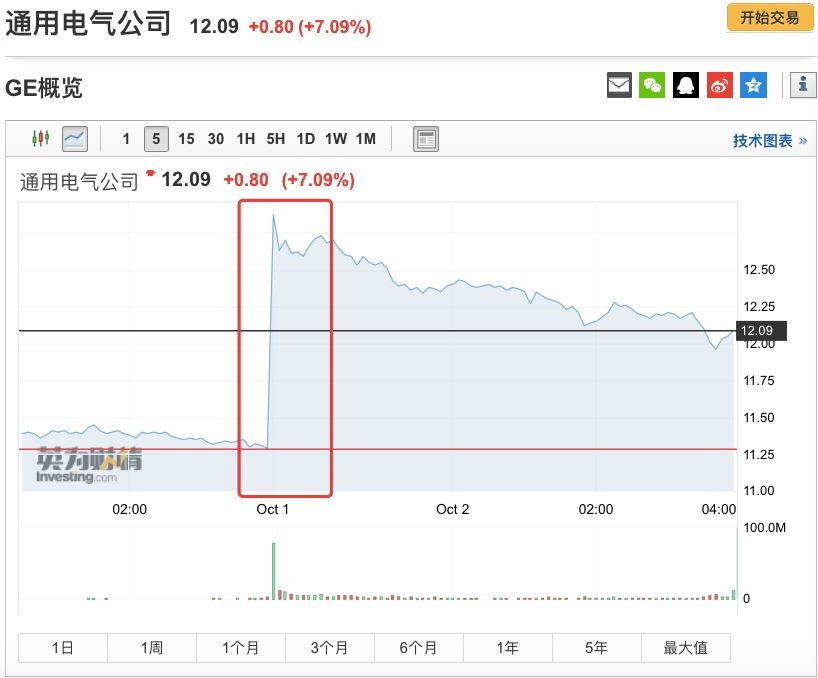对通用电气的管理层变更,市场给出了非常积极的反馈。周一(10月1日)美股市场,通用电气开盘大涨逾15%,盘初涨幅逼近16%,最终收涨7.09%。