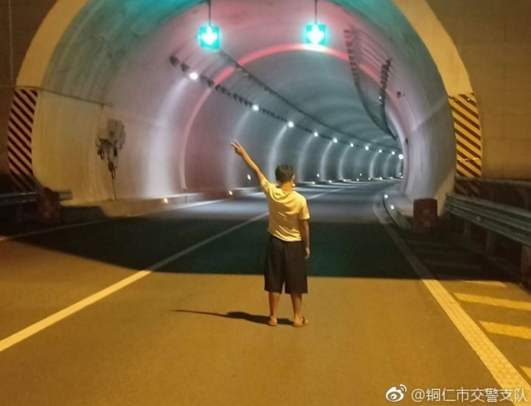 近日,在贵州铜仁境内一高速隧道口处,四个“熊孩子”发现隧道口的路灯很亮,十分适合拍照,为了能在朋友圈和社交平台上当“网红”,四人就在高速路中间凹造型、玩自拍。