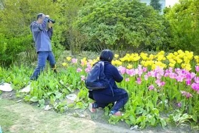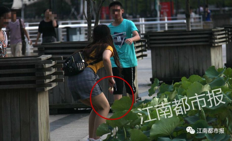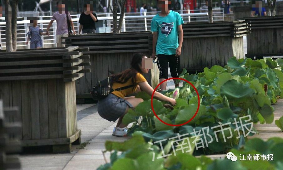 此前在南昌秋水广场,一女游客将花儿摘走。
