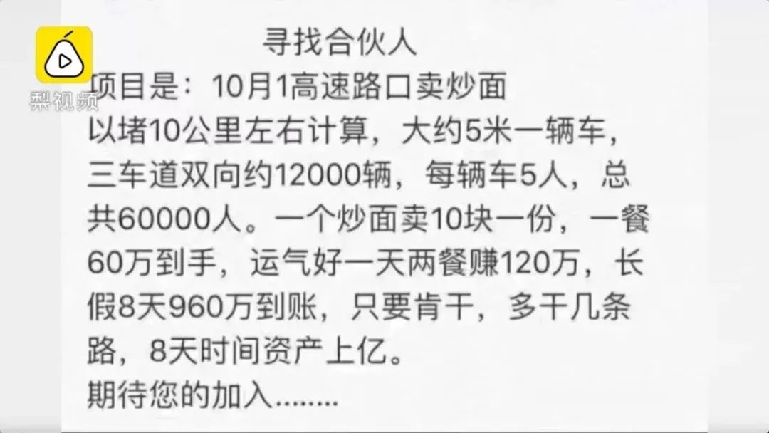 “高速上卖炒面,8天资产上亿!”这两天还真有人这么干,结果…