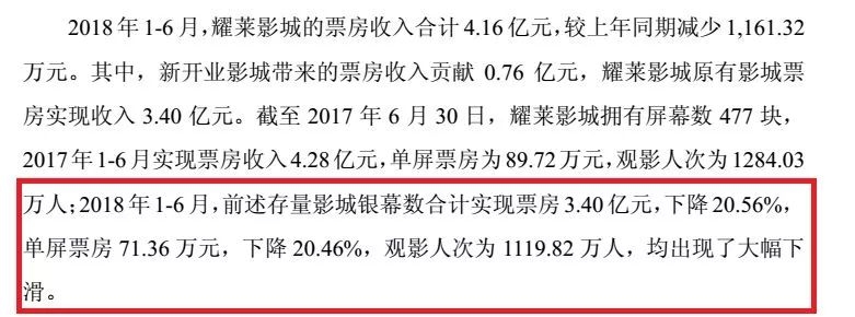 不过,值得注意的是,虽然新建影城一年期难盈利属于行业较普遍现象,但耀莱原有影城的票房也在今年上半年同比下降了20.56%,其中单屏票房下降20.46%,观影人次也出现了大幅下滑。