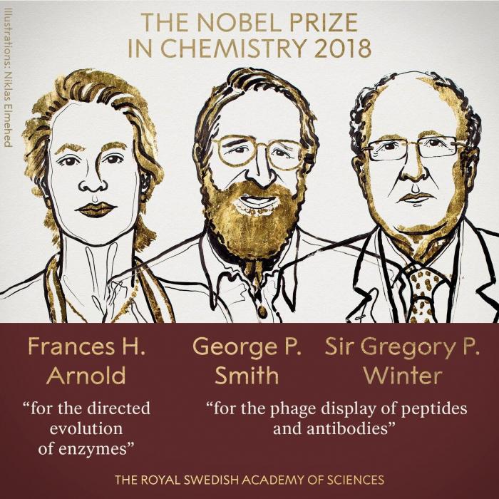 Frances H. Arnold、George P. Smith和Gregory P. Winter.获得2018年诺贝尔化学奖。