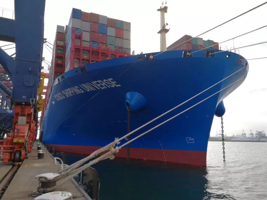 图为停靠在荷兰鹿特丹港的中远海运“宇宙”轮。(照片由中远海运提供)