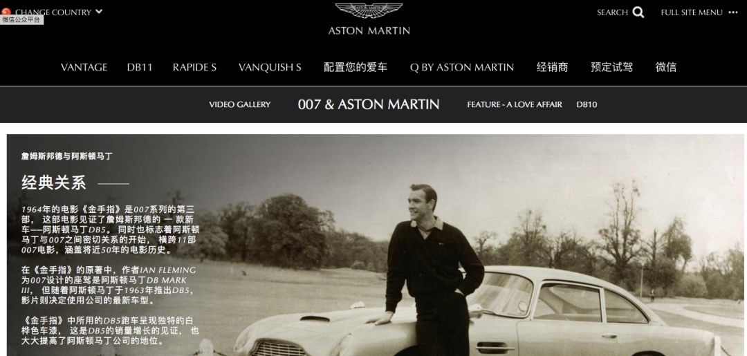 更心酸的是,1947年,阿斯顿马丁被一家拖拉机公司收购。但时任老板大卫·布朗用其名字首字母创造了经典车型——阿斯顿马丁DB系列,扭转了落魄处境。之后,第五代DB车型参演了“007”系列电影《金手指》,让阿斯顿马丁成功走出英国,蜚声全球。此后,全球记住的不止是詹姆斯·邦德,还有其专属座驾阿斯顿·马丁。