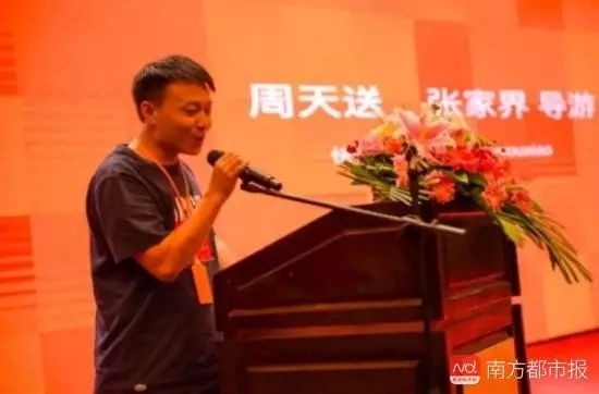 今年7月底,张家界联合快手举办了名为“打开快手,发现张家界”的新闻发布会,周天送还作为旅游从业者代表上台发言。