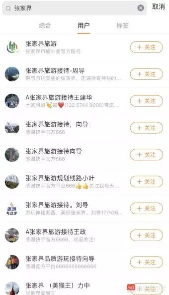 快手上搜”张家界“,排在最前面的都是导游号。