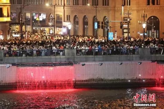 10月1日晚,上海外滩人潮如织。中新社记者 张亨伟 摄