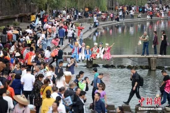 10月2日,湖南凤凰古城人头攒动。杨华峰 摄