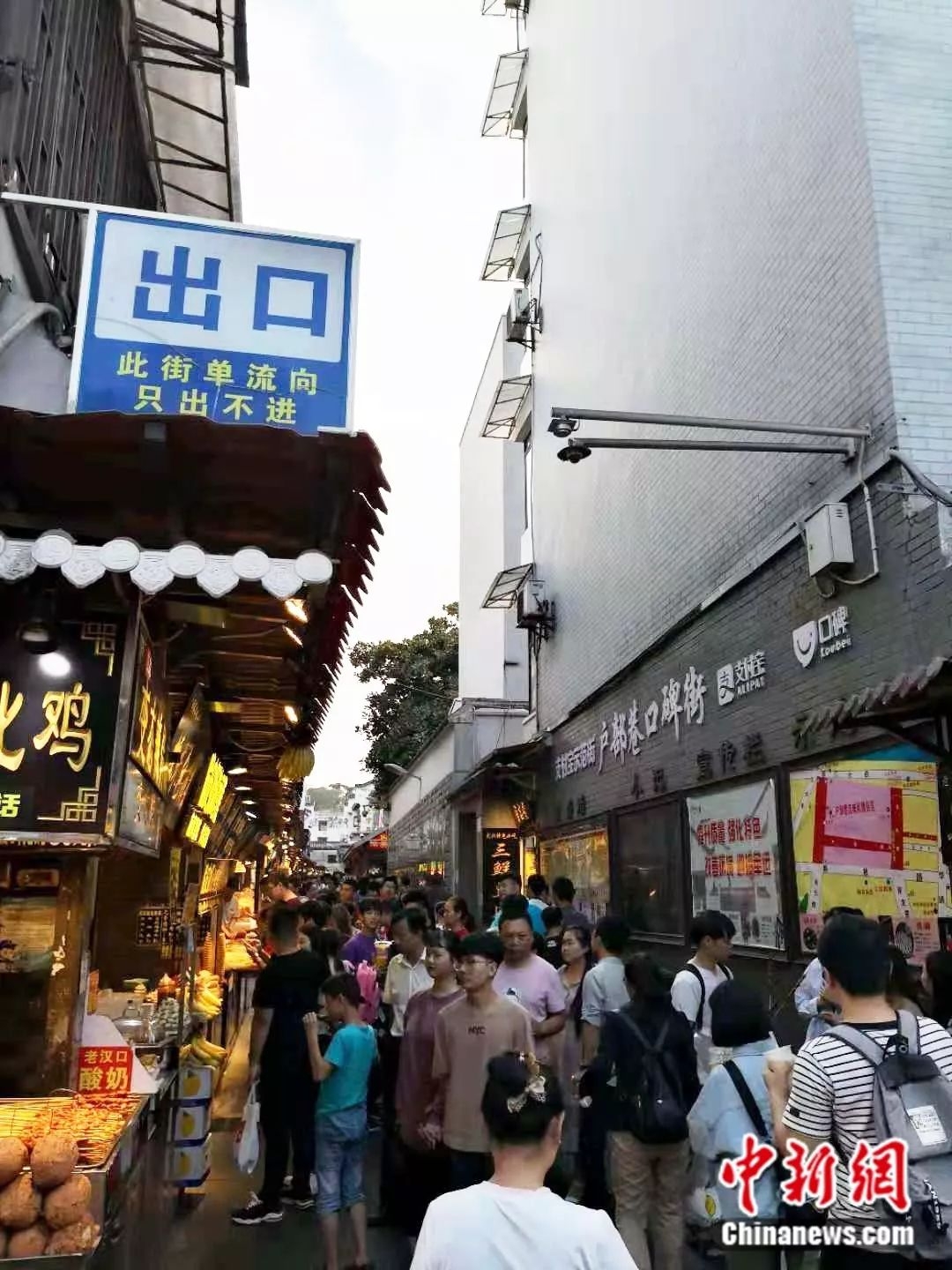 国庆期间,武汉某小吃街人头攒动。袁秀月 摄