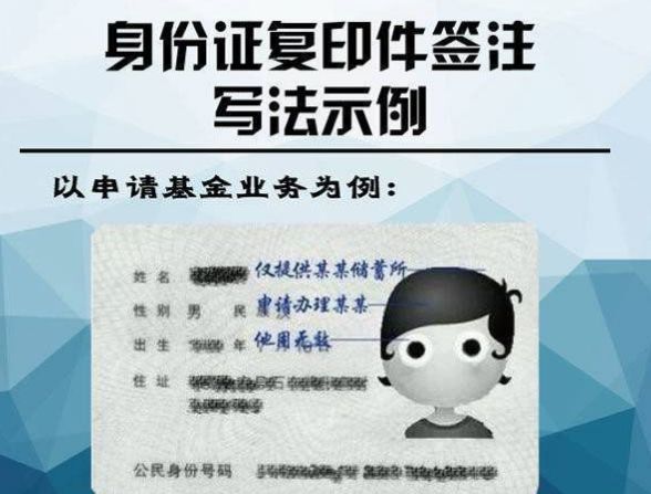②标注要注明身份证的用途,仅可使用一次,再复印无效等语句,一般办理时可写“本复印件仅用于办理xx使用,再复印无效。”