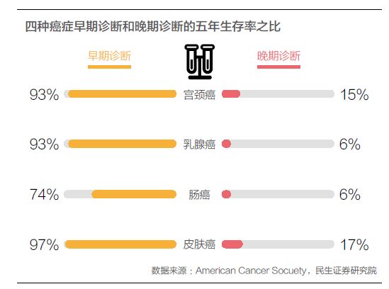 中国当前对癌症早筛的普及与推广,对于癌症治愈率与生存率的改变,杯水车薪。用户主观意愿上的空白,沟壑难填。