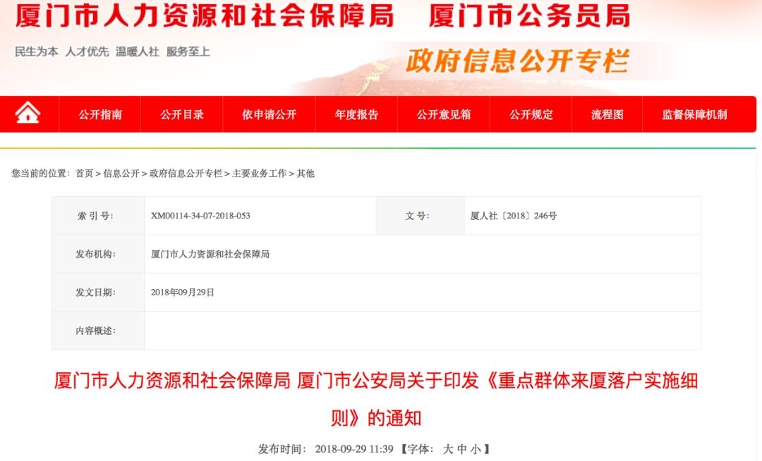 9月29日,厦门市人力资源和社会保障局和厦门市公安局发布了关于印发《重点群体来厦落户实施细则》的通知。