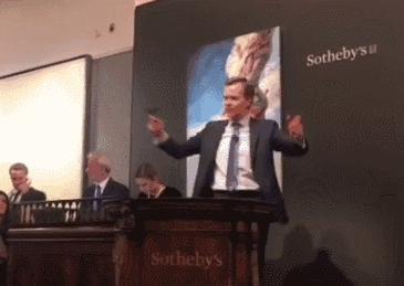 两名电话出价的买家相互喊价后,最后以104.2万英镑(约合人民币939万元)落锤成交,成交价高出底价3倍,也创下班克斯作品的拍卖记录。