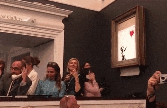 近日,英国著名画家班克斯(Banksy)的名画“女孩与气球”在苏富比拍卖行进行拍卖。