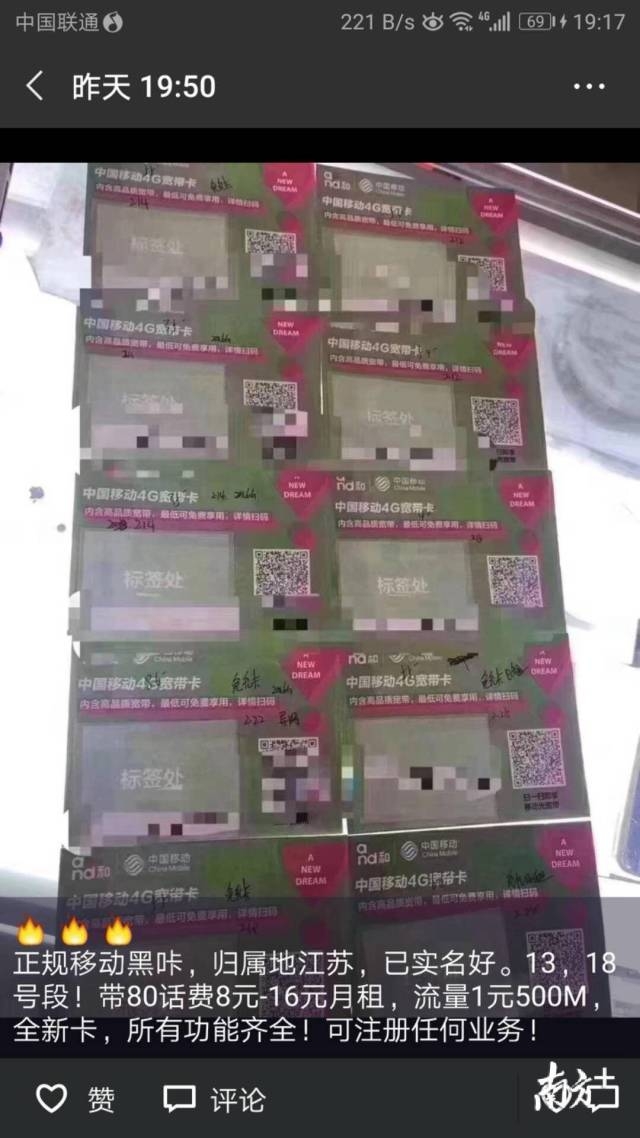 记者添加联系的另一卖家,所售卖的电话卡品种相对少,仅提供北京移动13/18号段的已注册电话卡,售价168元。当记者询问是否有其他运营商的电话卡提供时,卖家表示“只有移动的,因为移动卡最稳”(信号稳定还是货源稳定?对此卖家并无明说)。对其他卡商售卖170虚拟号段,该卖家则露出不屑:“虚拟卡跟我这没什么可比的。”